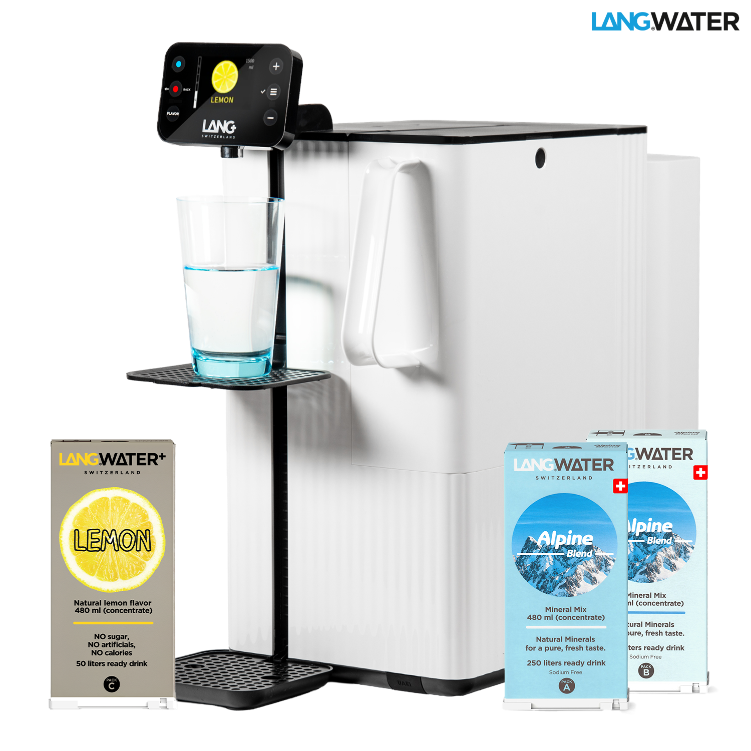- Sabor Personalizable y Consistente: El sistema de entrega líquida LANGPAK asegura la adición precisa de minerales esenciales a tu agua. Desde el primer hasta el último litro. ¡Ajusta los niveles de minerales para que coincidan con tus preferencias de sabor! También puedes añadir sabores de frutas refrescantes para crear un agua saborizada.