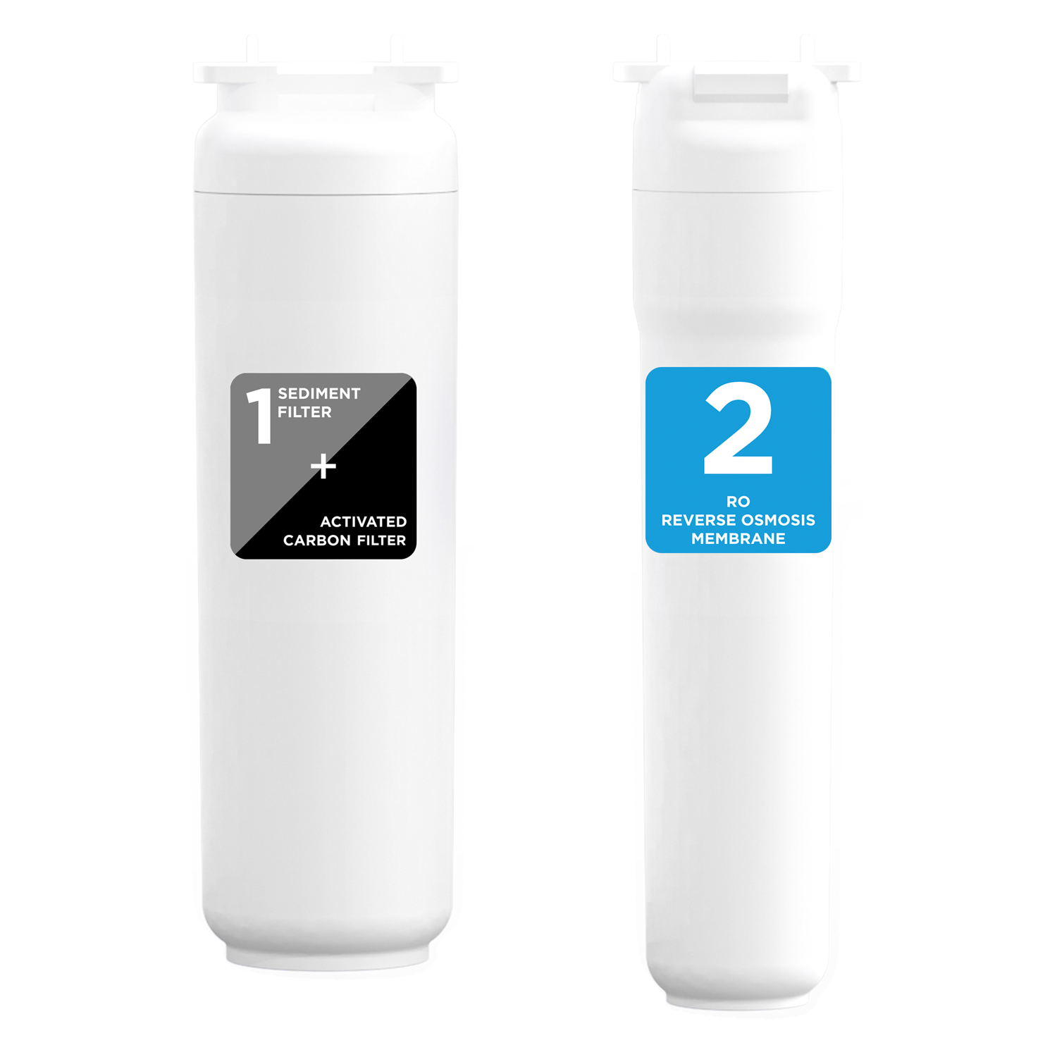 LANGWATER Jeu de filtres de rechange pour le Purificateur d'Eau TheWell 2. Filtre 1 Sédiments combiné avec Charbon Actif, Filtre 2 Osmose Inverse Certifiée NSF 58 - Anti-tartre – Installation Facile: