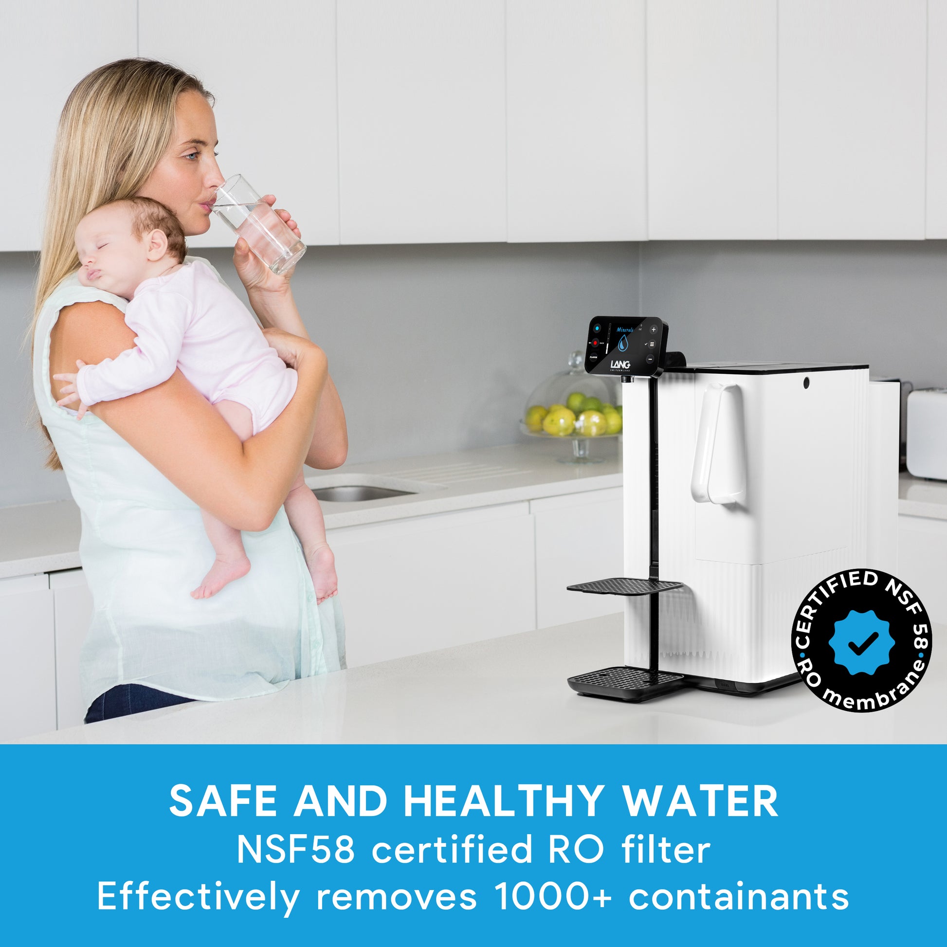 EAU PURE & SAINE : Ce filtre RO est la 3ᵉ étape du système de filtration avancé LANGWATER, éliminant jusqu'à 99,9 % des métaux, microplastiques, PFAS, hormones, résidus pharmaceutiques, etc.