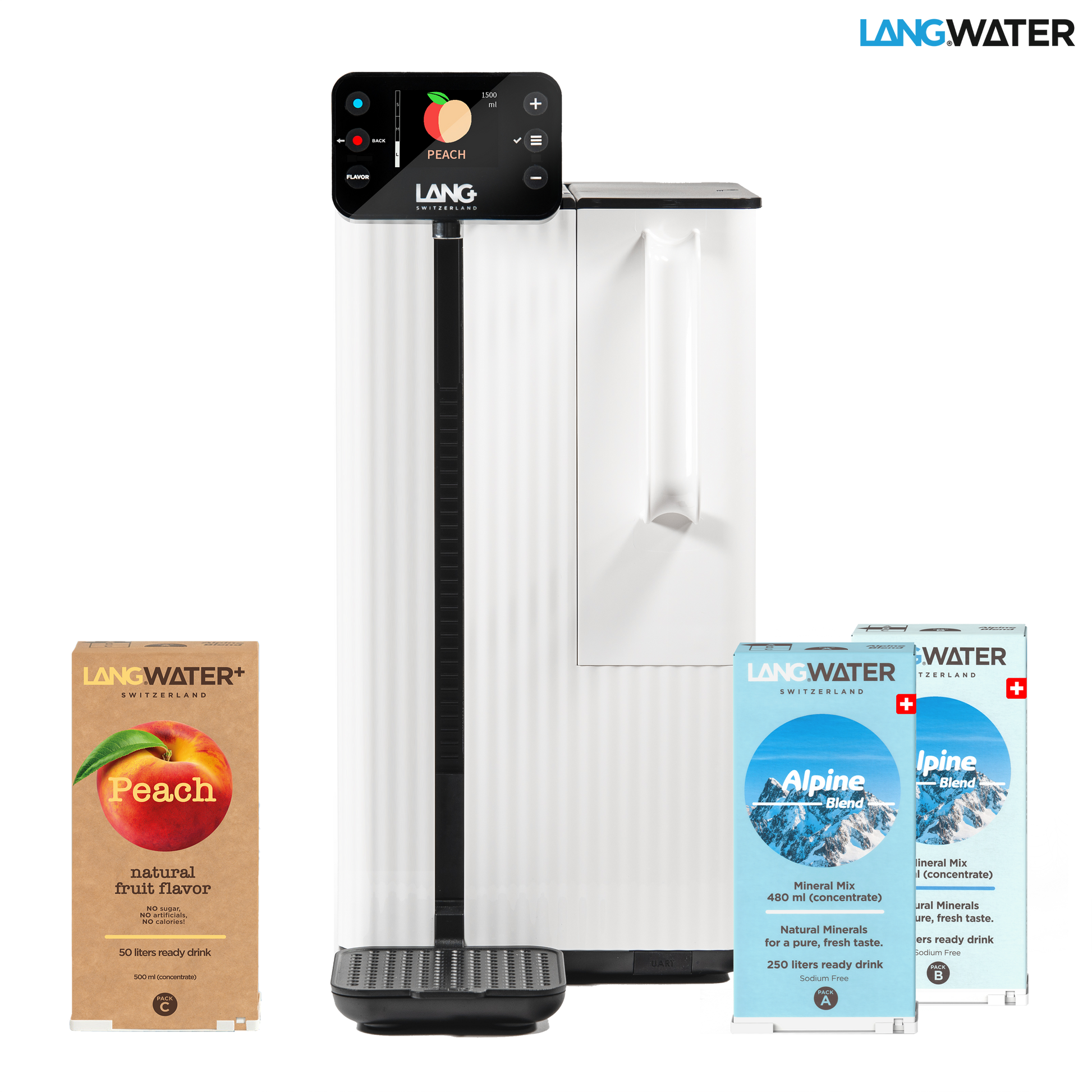 - Goût constant et personnalisable : Le système de distribution liquide LANGPAK garantit l'ajout précis de minéraux essentiels à votre eau, du premier au dernier litre. Et vous pouvez ajuster les niveaux de minéraux à votre goût ! Vous pouvez également ajouter des arômes de fruits rafraîchissants pour créer une eau aromatisée.