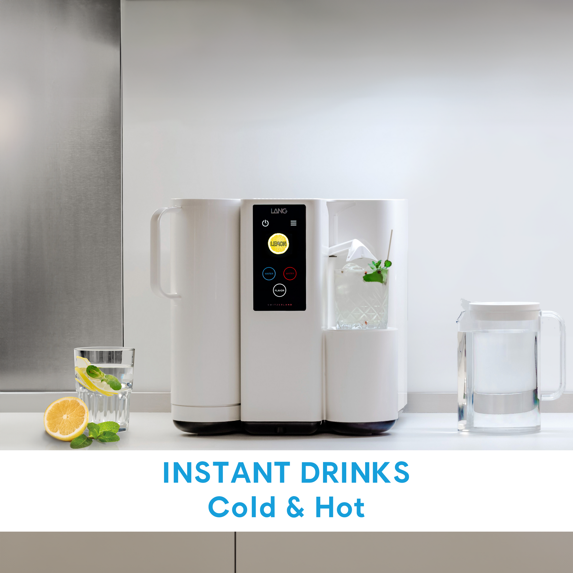 En appuyant sur un bouton, TheWell sert une eau instantanément purifiée et re-minéralisée. Avec ou sans arômes. Chaude ou non.