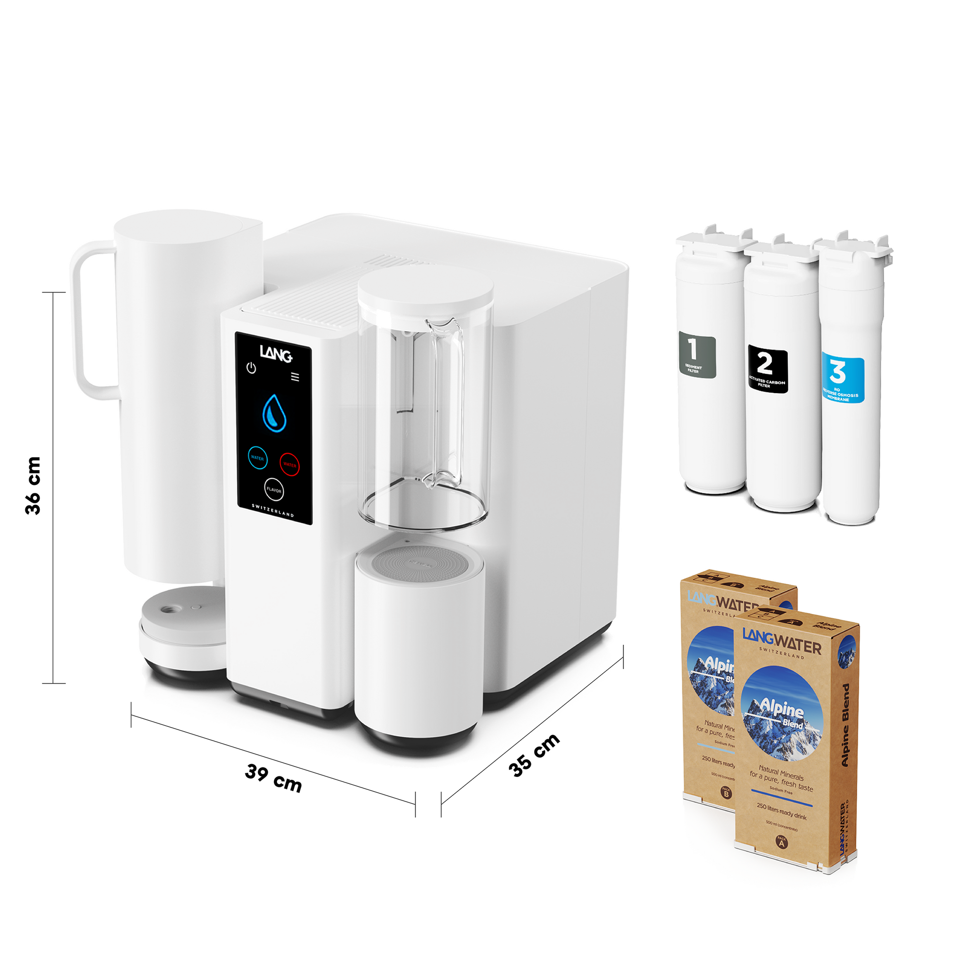 Il purificatore d'acqua con remineralizzazione, sviluppato in Svizzera, è l'unico depuratore d'acqua ad osmosi inversa istantaneo con minerali garantiti. Acqua sana e deliziosa a casa, senza alcuna installazione necessaria.